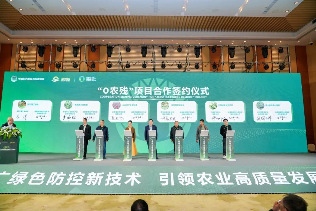 會議期間,新朝陽進行了隆重的“0農(nóng)殘”項目合作簽約儀式,來自蒲江柑橘、新疆香梨、云南食用玫瑰、陜西周至獼猴桃、江西有機蘆筍、湖北高山蔬菜的區(qū)域代表現(xiàn)場簽約。為了提升農(nóng)產(chǎn)品質(zhì)量安全,提升農(nóng)業(yè)產(chǎn)業(yè)價值,推動鄉(xiāng)村振興,助力農(nóng)業(yè)高質(zhì)量發(fā)展,新朝陽利用“零農(nóng)殘”全程生物集成技術(shù),以從“土壤到餐桌”的全程生物技術(shù)為核心,依托健康植保8s作物全程標(biāo)準(zhǔn)化管理體系,實現(xiàn)作物全程生物集成技術(shù)服務(wù),最終實現(xiàn)農(nóng)產(chǎn)品的“零農(nóng)殘”。